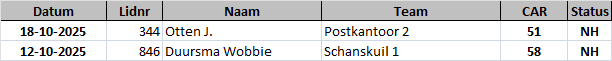 Nieuwe spelers die na 4 partijen meer dan 10% boven hun gemiddelde spelen verliezen alle punten van de partijen waarin ze meer dan 10% boven het gemiddelde gespeeld hebben.