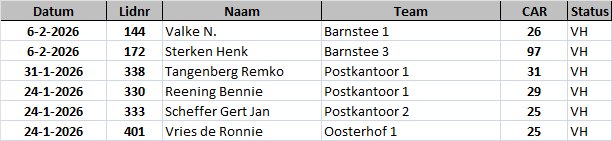 Nieuwe spelers die na 4 partijen meer dan 10% boven hun gemiddelde spelen verliezen alle punten van de partijen waarin ze meer dan 10% boven het gemiddelde gespeeld hebben.